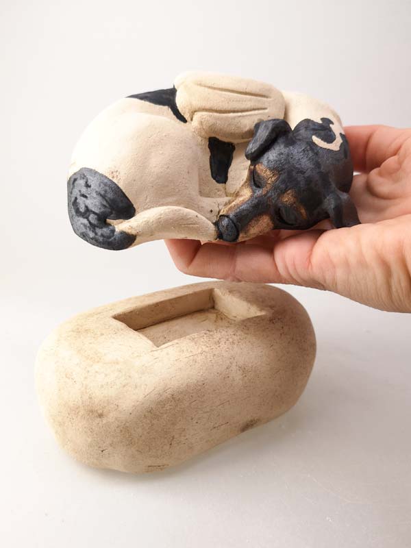 Meine Miniatur Skulpturen sind die süßeste Variante aus Keramik. Hierzu brauche ich meist nur ein Bild von Ihrem Tier, dem ich Schnauzenlänge, Ohrenstellung, Rutenlänge, Fell und Flecken entnehmen kann. Meine kleinen Tonskulpturen – Anhänger, starten mit einem Gewicht von 20 g und werden von mir – ausschließlich in Handarbeit gefertigt. Jede Figur ist eine Einzelanfertigung und damit ein Unikat. Ich modelliere meine Tierfiguren ausschließlich frei Hand. Gerne bekommen Sie auch hier schon ein Bild während der Entstehung zugesendet. Meine Miniatur-Skulpturen in 200 Gramm eignen sich neben den leichteren Anhängern als außergewöhnliches Geschenk für jeden Tierfreund. Ich biete auch Miniatur Skulpturen in 200 Gramm passen wunderbar auf eine Handfläche. Die Miniatur Skulpturen gibt es zusätzlich noch in 500 g.