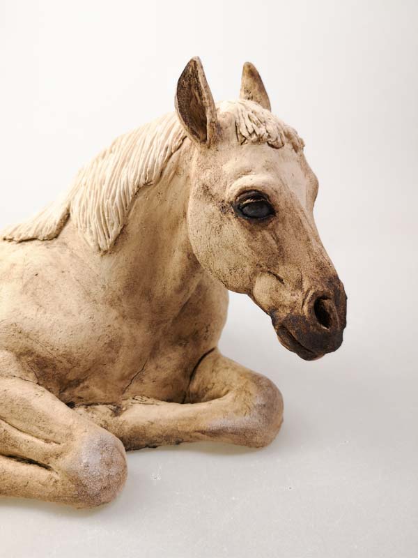 Die Trocknung beginnt erst mit Ihrem Einverständnis. Die ersten Tage der Trocknung wird alles noch unter Folie vorsichtig angetrocknet und das Werkstück regelmäßig auf trockene Platten umgesetzt. Nach der Antrocknungsphase bedecke ich alles mit trockenen Tüchern um dadurch ein gleichmäßiges Durchtrocknen ohne große Spannungen zu ermöglichen. Erst, wenn sich die Keramik angenehm anfühlt, darf sie in den ersten Brand. Je nach Größe der Figur oder des Werkstücks sind das 2-3 Wochen Trocknungszeit.